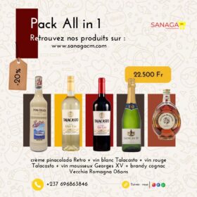Pack All in 1 : Retro pinacolada + vin rouge Talacasto + vin blanc Talacasto + vin mousseux blanc George XV + Brandy cognac Vecchia Romagna 06ans